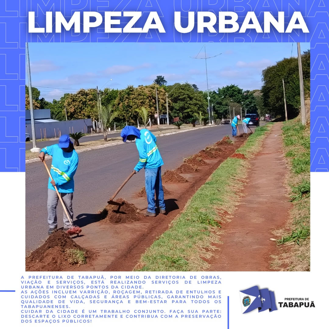 As ações incluem varrição, roçagem, retirada de entulhos e cuidados com calçadas e áreas públicas, garantindo mais qualidade de vida, segurança e bem-estar para todos os tabapuanenses.