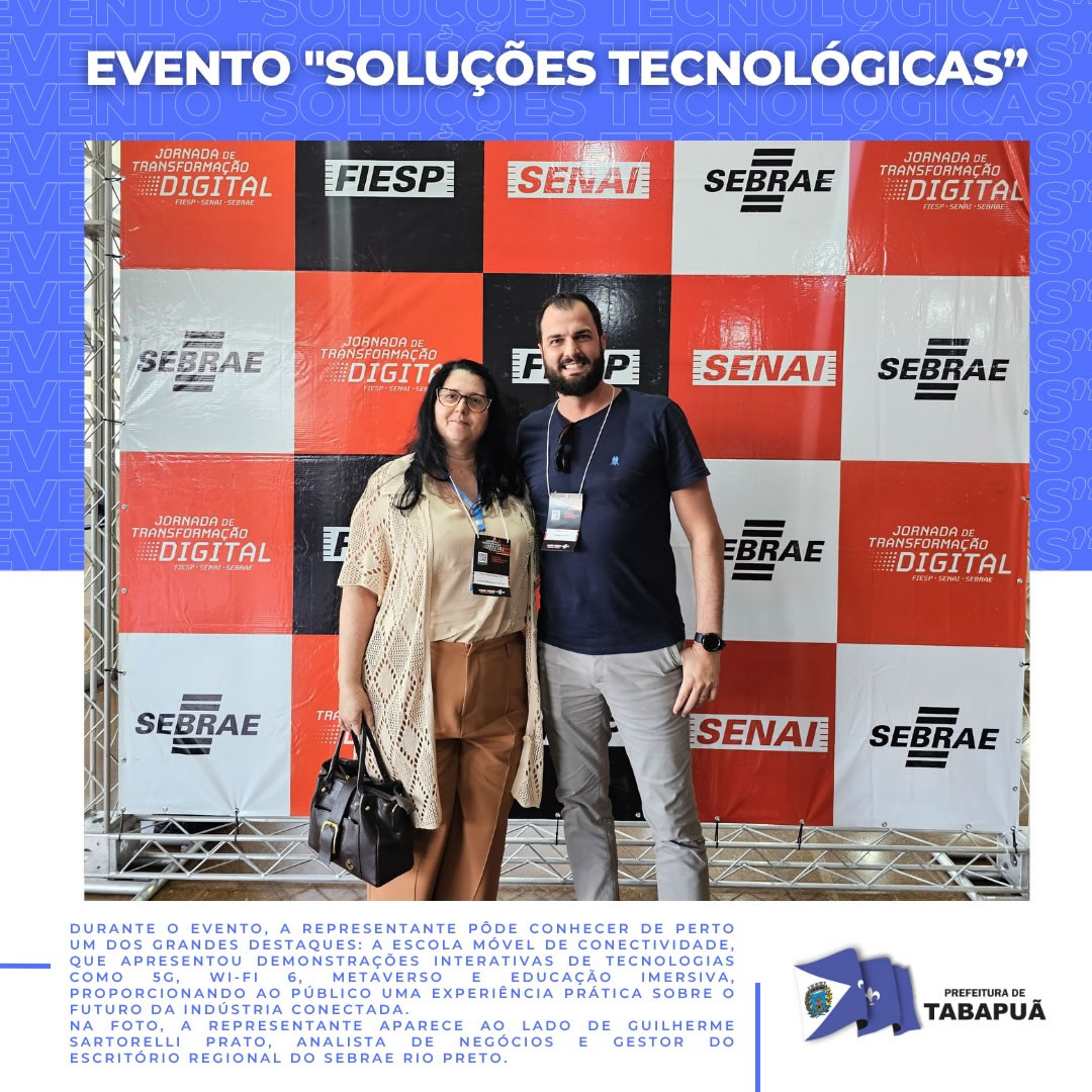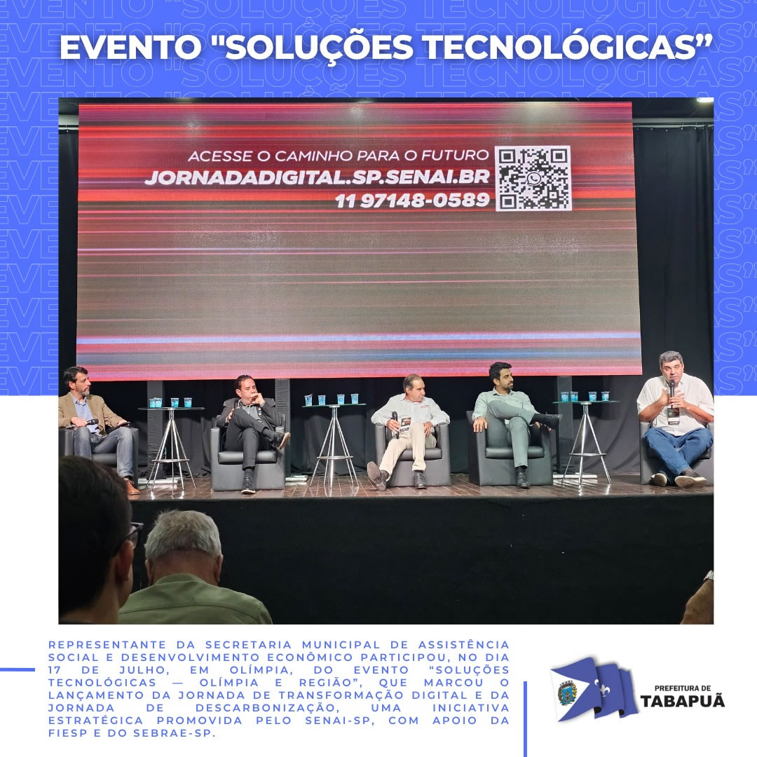 Representante da Secretaria Municipal de Assistência Social e Desenvolvimento Econômico participou, no dia 17 de julho, em Olímpia, do evento “Soluções Tecnológicas - Olímpia e Região”, que marcou o lançamento da Jornada de Transformação Digital e da Jornada de Descarbonização, uma iniciativa estratégica promovida pelo SENAI-SP, com apoio da FIESP e do SEBRAE-SP.