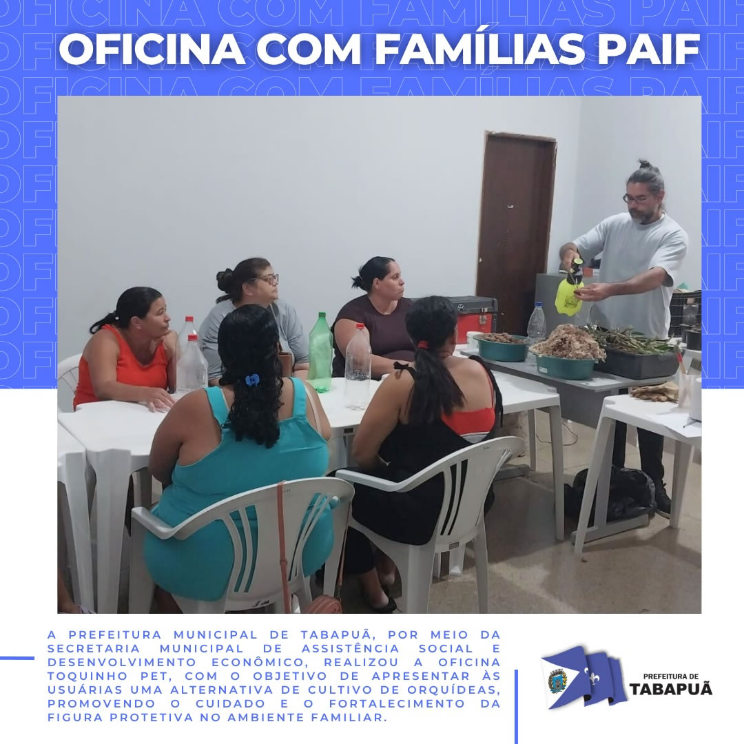 A Prefeitura Municipal de Tabapuã, por meio da Secretaria Municipal de Assistência Social e Desenvolvimento Econômico, realizou a Oficina Toquinho Pet, com o objetivo de apresentar às usuárias uma alternativa de cultivo de orquídeas, promovendo o cuidado e o fortalecimento da figura protetiva no ambiente familiar.