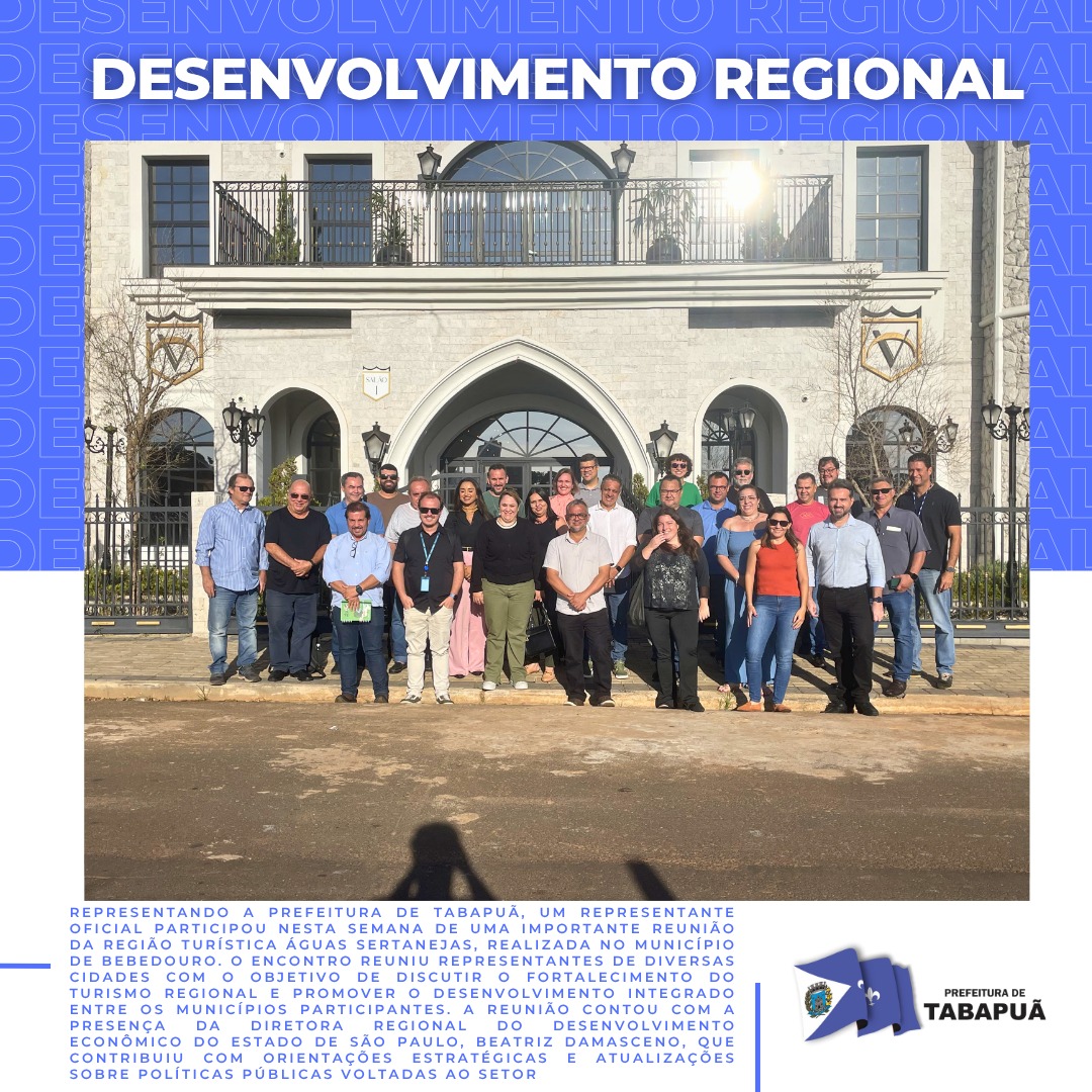 Representando a Prefeitura de Tabapuã, um representante oficial participou nesta semana de uma importante reunião da Região Turística Águas Sertanejas, realizada no município de Bebedouro. O encontro reuniu representantes de diversas cidades com o objetivo de discutir o fortalecimento do turismo regional e promover o desenvolvimento integrado entre os municípios participantes.