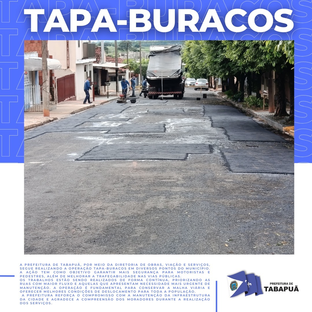A Prefeitura de Tabapuã, por meio da Diretoria de Obras, Viação e Serviços, segue realizando a operação tapa-buracos em diversos pontos do município. A ação tem como objetivo garantir mais segurança para motoristas e pedestres, além de melhorar a trafegabilidade nas vias públicas.